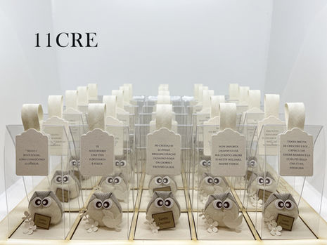 La nostra passione per l'artigianato e la cura dei dettagli ci guida nella realizzazione di simpatici personaggi come gufetti, ricci, gnomi e topini di stoffa, ciascuno in una confezione trasparente accompagnato da un messaggio speciale.